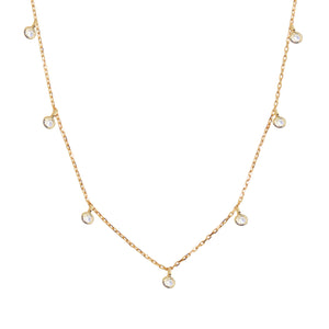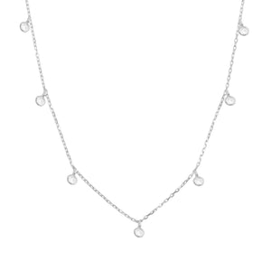 This lovely and simple layering piece can be worn everyday. Sterling silver choker necklace with high-quality crystals. Adjustable chain from 16-inches to 18-inches. Plating options available in 14k gold, rose gold, and silver.