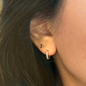 These sleek ear huggies are lined with brilliant cubic zirconia crystals, offering just the right touch of shimmer for any occasion. Designed to hug the ear comfortably, they’re lightweight, versatile, and perfect for stacking or wearing solo.