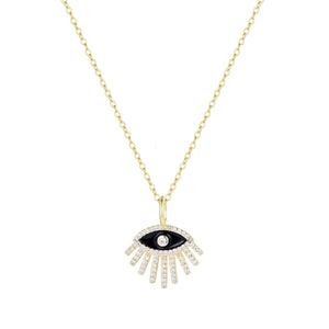 A beautiful evil eye necklace with lab-created opal or black enamel, and set in 925 sterling silver. Evil eyes are for protection. Pair this necklace with our opal chokers or your favorite gold chain for a fun layered look.