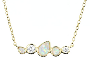 Beautiful opal cluster necklace with cz! Set in sterling silver with 14k gold plating.