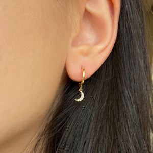 Moon huggie earrings set in 925 Sterling silver with crystal pave.