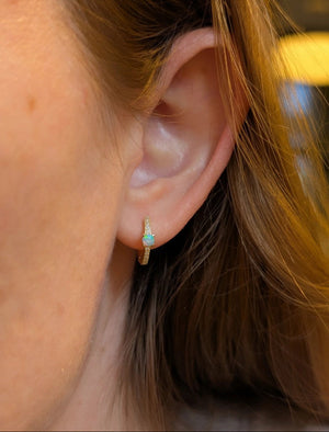 Fall in love with the perfect heart earring huggies with a pop of vibrant opal color!