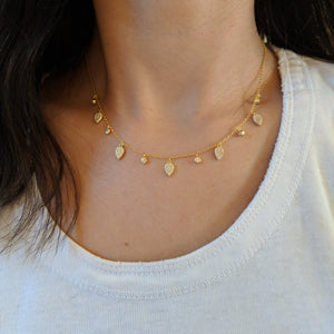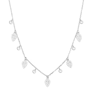 Our Blessings necklace gets added "dew drops" in crystal. One of our most popular necklaces! Petal-shaped crystal drops set in 925 Sterling silver. Adjustable 18 inch silver chain with slider ball.