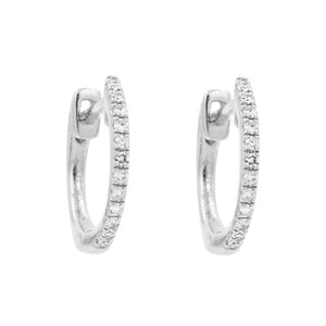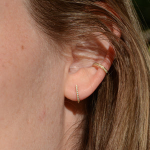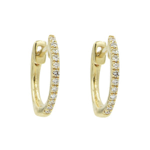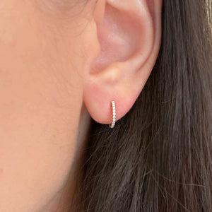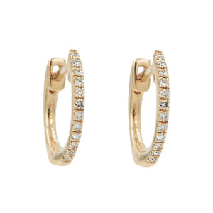 These Thin Diamond Huggie Earrings in 14k Gold are the perfect everyday staple. They are delicate, timeless, and have the right amount of sparkle. They are set with mini diamonds. Dress them up or down for any occasion!