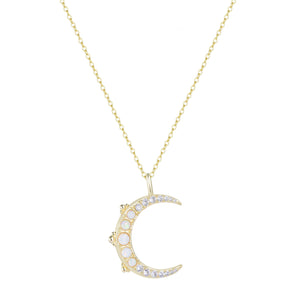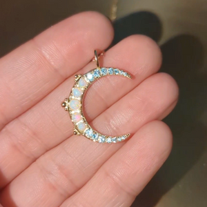 The perfect crescent moon charm necklace to match and layer with our signature opal necklaces! The moon is for dreamers. This necklace has a fun mini pop of vibrant white opal color! A great size to stand out and a perfect to match with your favorite opal butterfly necklace.