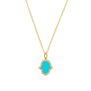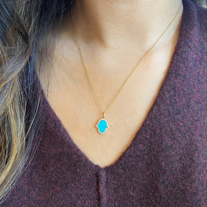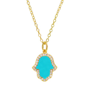Our wildly popular hamsa hand necklace is now available in a stunning blue turquoise. Across cultures, the Hand of Fatima is a symbol for protection and God's willingness to reach out during times of struggle.