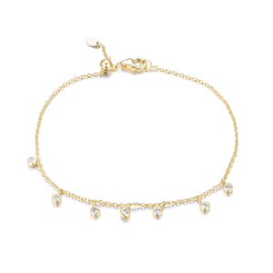 Beautiful layering dew drops bracelet set in sterling silver with 14k gold plating with crystal drops. Can be adjusted shorter with adjustable slider chain! 7 inch bracelet.