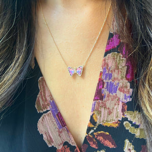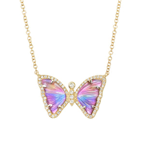 Mini Sunset Rainbow Pearl and Topaz Butterfly Necklace with Diamonds