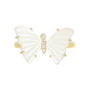 The pearl has a soft sheen and a light hue. Butterflies represent hope and transformation.This ring is a size 7. We can custom make this ring in any size. For a request, please email us at contact@kamaria.com.