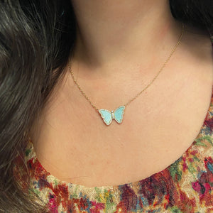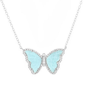 New! The most beautiful and delicate butterfly necklace is now available with amazonite and set in 925 sterling silver. The butterfly wings are surrounded with pave crystal for an added sparkle. Butterflies represent hope, rebirth, and transformation. Pair this necklace with our crystal chokers or your favorite gold chain for a fun layered look. <3