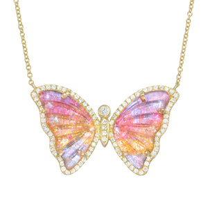 Caribbean Sunset Topaz Butterfly Necklace With Diamonds