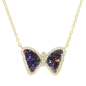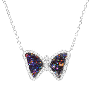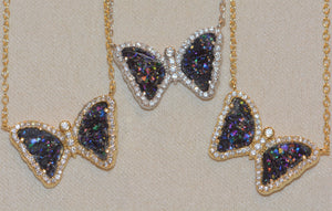 Doublet stone: quartz or glass wings with iridescent mother-of-pearl backing