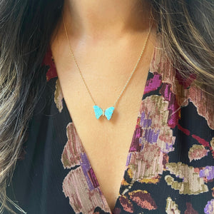 Opal and Turquoise Butterfly Necklace with Diamonds and Prongs