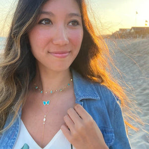 Our sterling silver jewelry is made with 925 silver. To keep the jewelry looking bright and polished, keep all jewelry away from harsh chemicals like household cleaning fluids as they create abrasions and reduce the lustre of the metal. Cleaning silver jewelry is best done with a professional jewelry cleaning product. Thoroughly dry your silver jewelry after exposure to water. Also adhere to all General Care instructions.