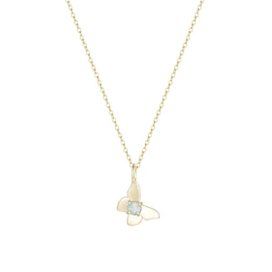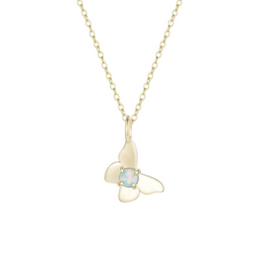 The perfect little butterfly charm necklace to match and layer with our signature opal necklaces! The butterfly represents hope, rebirth, and transformation. This necklace has a fun mini pop of vibrant opal color! A great size and a perfect to match with your favorite opal butterfly necklace.