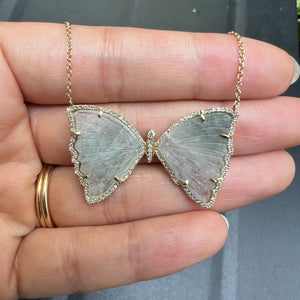 Moss Green Aquamarine Butterfly Necklace with Diamonds