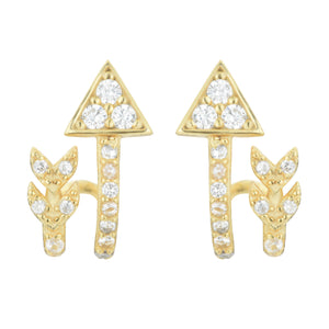 These Arrow Huggie Earrings With Crystals are cool, hip, and modern! Change up your everyday huggies with these arrow earrings. The arrow is a reminder to always look forward and aim for your goals. Sometimes life can be challenging and you can feel like you are stuck. Always remember to take one step forward at a time and trust in the future. Pair these huggies with some of our other studs for a fun layered look, or wear them on their own!