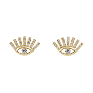 These Diamond Evil Eye Studs Earrings With Lashes are unqiue and meaningful! Evil eyes are used as a sign of protection. Charms and decorations with eye-like symbols known as nazars are used to repel evil spirits.Wear them on their own, or pair with our other huggies and studs for a fun ear stack.