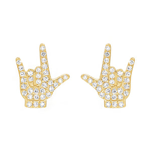 The cutest diamond stud earrings that represent "I love you" in sign language. The perfect studs to spread a little bit of positivity and love. This hand formation can also represent "rock on!" for the fellow rock-and-roll lovers.
