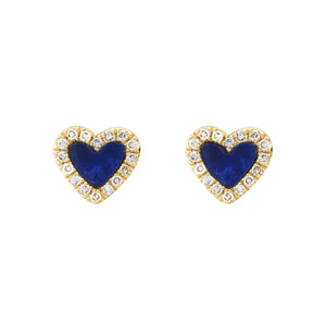 In "love" with these Blue Lapis Heart Stud Earrings! They are a perfect blend of elegance and modern charm. Crafted in 14K gold with delicate diamonds accentuating the heart-shaped lapis, these studs effortlessly transition from day to night. The rich contrast of blue lapis and gold adds a touch of sophistication, making them perfect for any occasion.