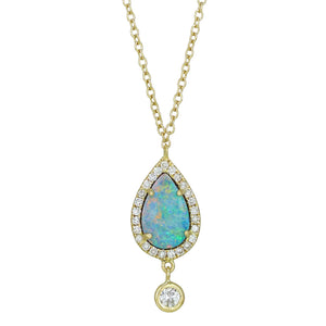Stunning Australian opal necklace surrounded in sparkly diamonds with a little diamond drop.