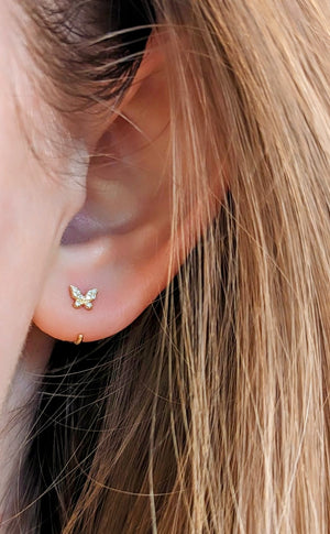 These butterfly huggies effortlessly hug your ear with a very smooth feel. Commonly worn as a great accent piece for a second piercing.