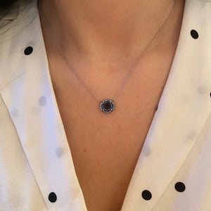 An urban, everyday classic, the Mini Baby Geode Necklace With Diamonds in 14k White Gold is sure to be your next all time favorite piece! It is edgy but still sophisticated. T he baby geode is part of the world's smallest geode. This agate promotes peace and tranquility, fostering the heart from anger and negativity. Unique, one-of-a-kind, and studded in diamonds, what's not to love!