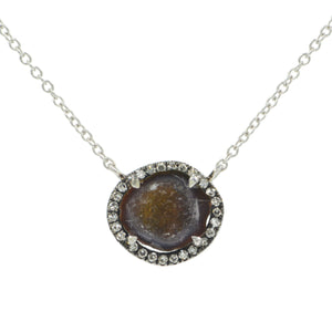Mini Baby Geode Necklace With Diamonds in 14k White Gold