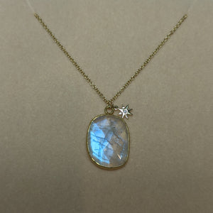 Moonstone Necklace with Star Diamond Charm