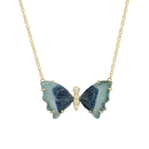 Mini Blue and Navy Tourmaline Butterfly Necklace with Prongs