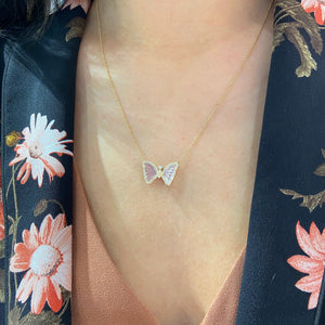 Mini Pink Amethyst Butterfly Necklace with Diamonds
