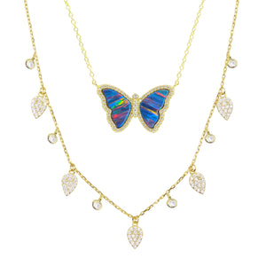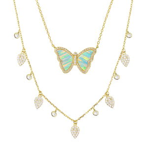 A curated set of our opal butterfly necklace with a flirty gold "Queen" choker. You can adjust the lengths of both necklaces with an easy-to-use adjustable silicon slider.