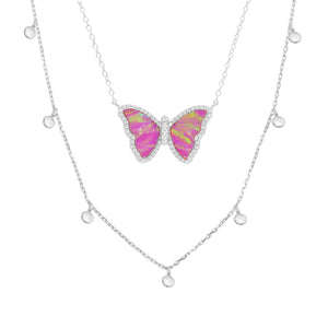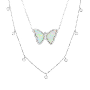 A curated set of our opal butterfly necklace with a delicate silver choker. Like frosty snowflakes paired with a radiant opal butterfly. The stripes in the opal are made to mimic the real appearance of butterfly wings. You can adjust both necklaces with an easy-to-use adjustable silicon slider.