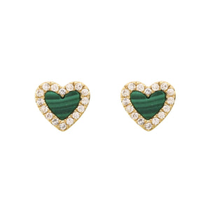 In "love" with these Malachite Heart Stud Earrings! They are a perfect blend of elegance and modern charm. Crafted in 14K gold with delicate diamonds accentuating the heart-shaped malachite, these studs effortlessly transition from day to night. The rich contrast of malachite and gold adds a touch of sophistication, making them perfect for any occasion.