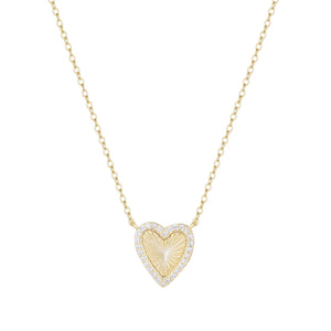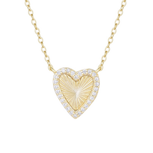 A mini fluted heart necklace with crystals. This lovely necklace for every day! This comes with an adjustable slider so that it can be worn any size up to 18 inches.