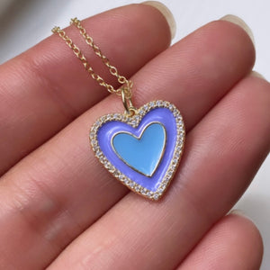 Inspired by the Pantone 2022 Color-of-the-Year "Very Peri," this two-toned enamel heart radiates positive energy. The light colors feel like a "clean slate." According to Pantone, Very Peri "helps us to embrace this altered landscape of possibilities, opening us up to a new vision as we rewrite our lives.” The color symbolizes personal inventiveness, carefree confidence, and daring curiosity. The blue undertones help us feel gratitude.