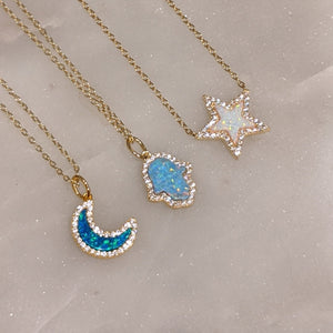 This delicate opal moon necklace is just right either on its own or paired with others in our opal collection. A waning crescent moon is a reminder to surrender, rest and prepare for new beginnings.