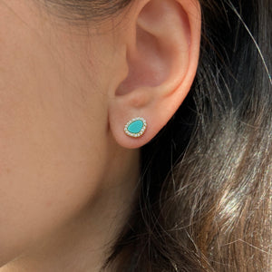 These pebble-shaped turquoise studs are surrounded by mini crystals in sterling silver. Turquoise is said to bring out calmness, creativity, and positive thinking. Wear them on their own, or pair with our other huggies and studs for a fun ear stack.
