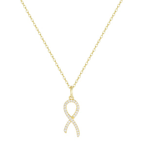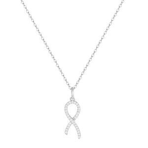 Cancer Ribbon Necklace with crystals available in both gold and silver. This ribbon serves as a visual representation of support, solidarity, and advocacy for individuals who are affected by cancer, including patients, survivors, and their loved ones. 18 inch chain is Sterling silver with an adjustable slider ball so it can be shortened to any length!