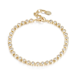 This timeless tennis bracelet features a continuous line of bezel-set cubic zirconia, each stone catching the light with subtle brilliance. The sleek bezel setting offers a clean, refined look—perfect for everyday wear or effortless stacking.