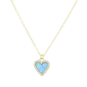Lab-created round opal heart necklace surrounded by sparkling crystals. Set in 925 Sterling silver and plated in gold.  Wear alone everyday or add to other layering pieces for a pop of color.The chain is 925 Sterling silver and is adjustable from choker length to 18 inches with slider ball.