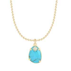 This elegant necklace features an irregularly shaped reconstituted turquoise pendant. A tiny star charm with a single CZ sparkles beside it, like a glint of starlight in a calm night sky.