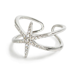 A customer favorite! Starburst ring set in 925 Sterling silver with pave crystals.