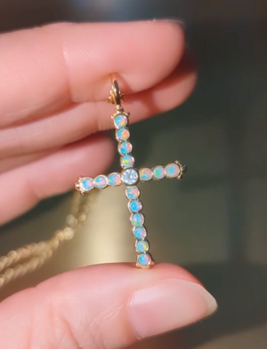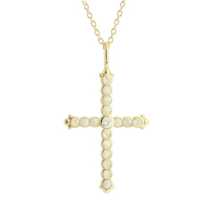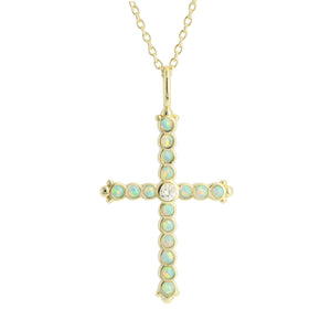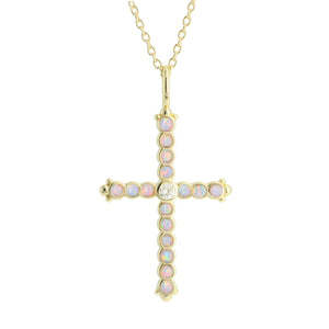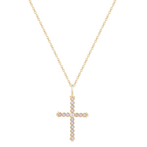 The perfect bezel opal cross necklace to match and layer with our signature opal necklaces! This necklace has a fun mini pop of vibrant opal color! A great size and a perfect to match with your favorite opal butterfly necklace.