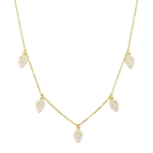 One of our most popular choker necklaces! Blessings has five crystal leaf drops which fall just right. The pear shaped crystal drops set in 925 Sterling silver. It is the perfect layering piece, but can also shine on its own. This choker necklace has an adjustable 18 inch silver chain with slider ball so that it can be shortened to any length!
