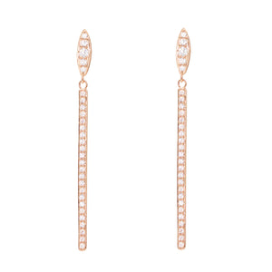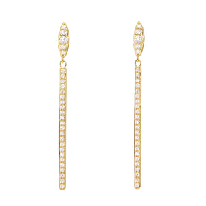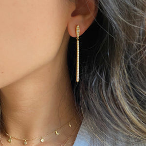 Modern and elegant, these Candlestick Dangle Earrings With Crystals will be your new favorite pair! They are elongated with sparkling crystals, giving a sophisticated look. These earrings are the perfect accessories for a fancy night out, or pair them with jeans for a fun casual look. Set in Sterling Silver with high-quality crystal pavé. Available in vermeil gold, rose gold, and silver.
