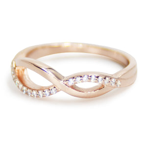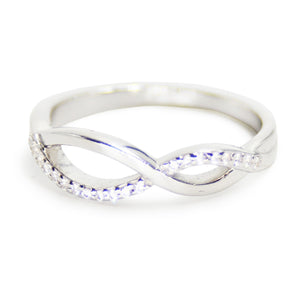 Our Infinity ring is classic, simple, yet stylish. Crystal pave is set in 925 Sterling silver.