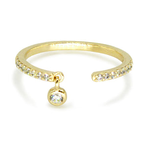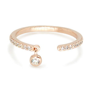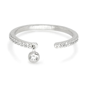 A single pave crystal dangles from this open pave ring.
