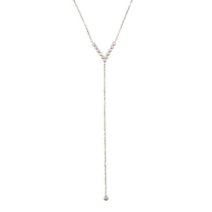 V-shaped crystals accented with asymmetric crystals and set in 925 Sterling silver with crystal drop.