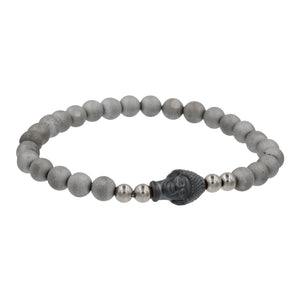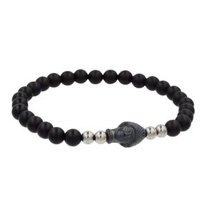 Matte black or grey agate accented with stainless steel beads with a beautiful carved buddha head.